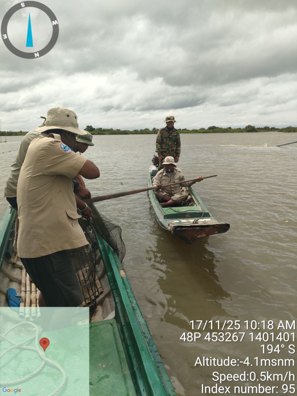 (កំពង់ធំ)÷ លោក ចាយ គង់ម៉េង នាយរងខណ្ឌរដ្ឋបាលជលផលកំពង់ធំ សហការជាមួយសង្កាត់រដ្ឋបាលជលផលកំពង់ស្វាយលើ ដឹកនាំកម្លាំងមន្រ្តីខណ្ឌជលផលកំពង់ធំ មន្ត្រីជាប់កិច្ចសន្យា និងសហគមន៍នេសាទសាមគ្គីអភិវឌ្ឍន៍បឹងស្ពង់ សហការជាមួយកម្លាំងទីបញ្ជាការស្រាលស្រុកកំពង់ស្វាយ ចុះទប់ស្កាត់ និងបង្ក្រាបបទល្មើសជលផលនៅចំណុចចោចហោច ក្នុងភូមិសាស្រ្តឃុំសាន់គរ ស្រុកកំពង់ស្វាយ និងចំណុចក្បាលខ្មៅ ក្នុងភូមិសាស្រ្តឃុំចំណាក្រោម ស្រុកស្ទោង ខេត្តកំពង់ធំ។ លោក កែវ សុឃឿន មន្រ្តីសង្កាត់រដ្ឋបាលជលផលបារាយណ៍(ប្រចាំស្រុកតាំងគោក) បានចូលរួមជាមួយទីបញ្ជាការស្រាលកោះរះ ចុះបង្ក្រាបបទល្មើសជលផលនៅចំណុចក្ដាមពង ព្រែកទាល់ ស្វាខ្មៅ ក្អែកដេក ទួលវិហារ និងបឹងឆារ ស្ថិតក្នុងភូមិសាស្រ្ត ឃុំស្រឡៅ ស្រុកតាំងគោក ខេត្តកំពង់ធំ នៅថ្ងៃទី១៧ខែវិច្ឆិកា ឆ្នាំ២០២៥។