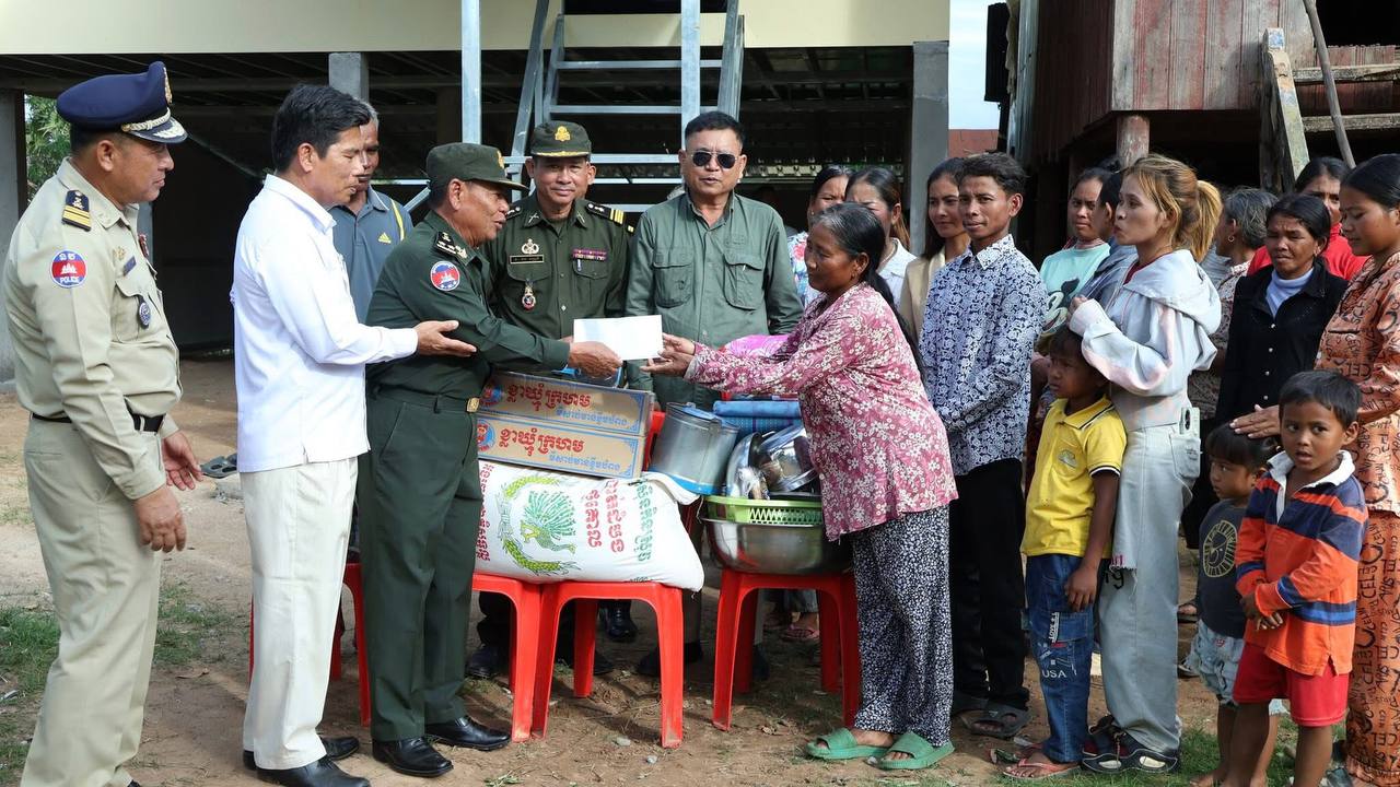 នៅក្នុងឱកាសនេះ ឧត្តមសេនីយ៍ទោ សោម ស៊ុន និងលោក ហេង ធារ៉ា ក៏បាននាំយកនូវស្បៀងអាហារ គ្រឿងឧបភោគបរិភោគ សម្ភារប្រើប្រាស់ មានមុង ភួយ កន្ទេល ខ្នើយ ចាន ឆ្នាំង ព្រមទាំងសម្ភារប្រើប្រាស់ផ្សេងៗ និងថវិកាមួយចំនួនទៀត ដែលជាអំណោយរបស់សម្ដេចមហាបវរធិបតី ហ៊ុន ម៉ាណែត និងលោកជំទាវ ជូនដល់ក្រុមគ្រួសារលោកយាយ សោម សៀម សម្រាប់ដោះស្រាយជីវភាពប្រចាំថ្ងៃ និងសម្រាប់ប្រើប្រាស់ក្នុងឱកាសទទួលបានផ្ទះថ្មីនៅពេលនេះផងដែរ ។