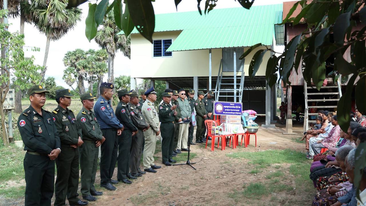 ខេត្តកំពង់ធំ៖ នៅរសៀលថ្ងៃទី១៨ ខែវិច្ឆិកា ឆ្នាំ២០២៥ ឧត្តមសេនីយ៍ទោ សោម ស៊ុន មេបញ្ជាការ តំបន់ប្រតិបត្តិការសឹករងកំពង់ធំ តំណាងគណៈកម្មាធិការសមាគមអតីតយុទ្ធជន និងនិវត្តជនកម្ពុជា ខេត្តកំពង់ធំ អមដំណើរដោយលោក ហេង ធារ៉ា អភិបាលរងស្រុក តំណាងប្រធានសមាគមអតីតយុទ្ធជន និងនិវត្តជនកម្ពុជា ស្រុកសន្ទុក បានដឹកនាំសហការី រួមជាមួយអាជ្ញាធរដែនដី ទៅប្រគល់ផ្ទះថ្មី ដែលទើបសាងសង់រួចនៅលើដីកម្មសិទ្ធិ របស់គ្រួសារអតីតយុទ្ធជនពលី មានដីតែគ្មានជម្រកស្នាក់នៅ នៅភូមិត្រពាំងត្រំ ឃុំទីពោ ស្រុកសន្ទុក ខេត្តកំពង់ធំ ។