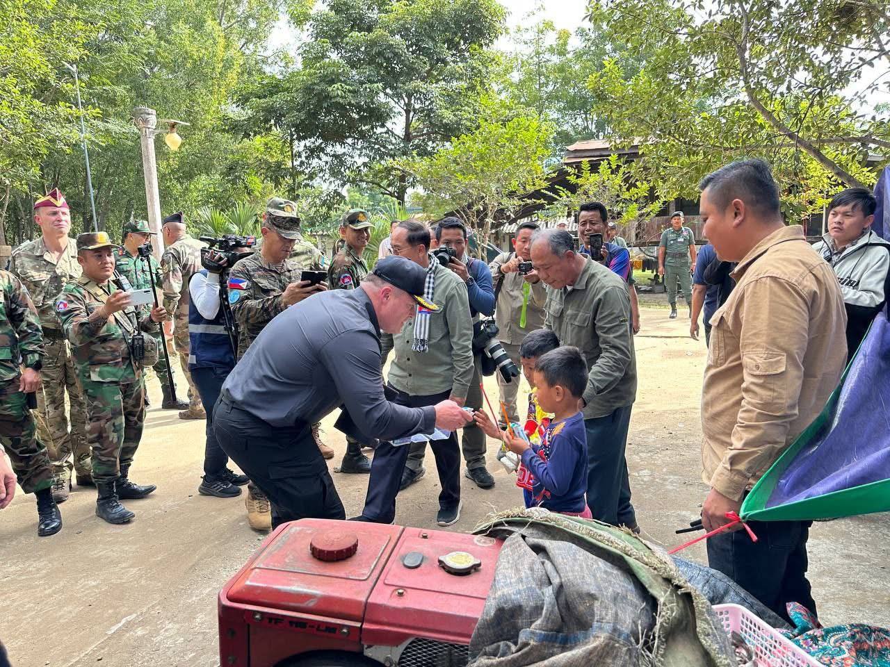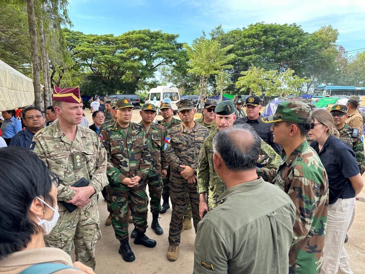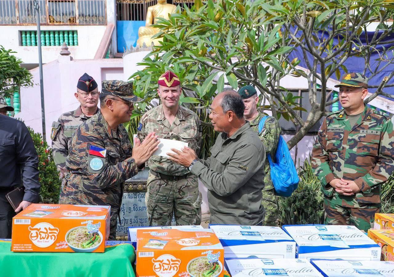នៅរសៀលថ្ងៃសៅរ៍ ទី២២ ខែវិច្ឆិកា ឆ្នាំ២០២៥ វេលាម៉ោង ១៤:១០នាទី ក្រុមការងារសម្របសម្រួលអ្នកសង្កេតការណ៍របស់ក្រសួងការពារជាតិ នៃព្រះរាជាណាចក្រកម្ពុជា (CLG) បានសម្របសម្រួលជូនក្រុមអនុព័ន្ធយោធាបរទេស ប្រចាំព្រះរាជាណាចក្រកម្ពុជា (Military Attaché Corps of Phnom Penh – MACPP) ចុះទៅសួរសុខទុក្ខដល់ប្រជាជនស្លូតត្រង់កម្ពុជាដែលជាជនភៀសសឹក ស្នាក់នៅបណ្តោះអាសន្ននៅវត្តចាន់ស៊ីសាមគ្គីរតនារាម ស្ថិតនៅភូមិកូបកើត ឃុំកូប ស្រុកអូរជ្រៅ ខេត្តបន្ទាយមានជ័យ ។