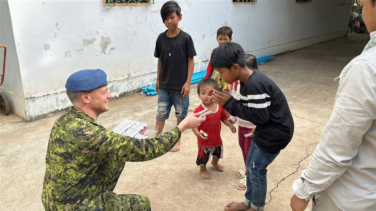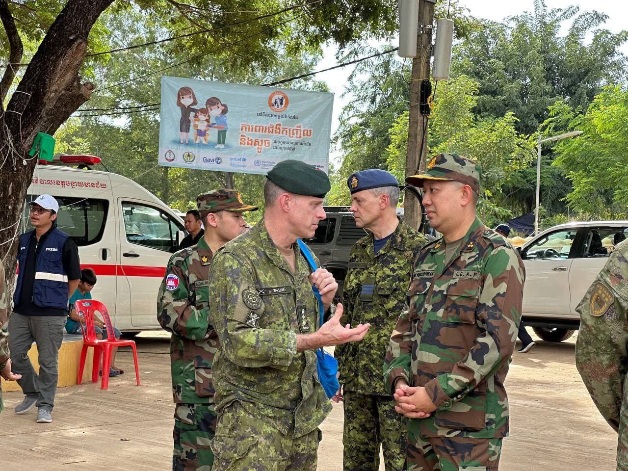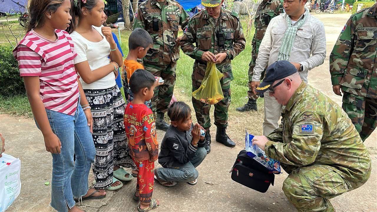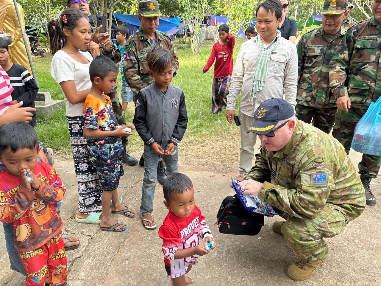 នៅរសៀលថ្ងៃសៅរ៍ ទី២២ ខែវិច្ឆិកា ឆ្នាំ២០២៥ វេលាម៉ោង ១៤:១០នាទី ក្រុមការងារសម្របសម្រួលអ្នកសង្កេតការណ៍របស់ក្រសួងការពារជាតិ នៃព្រះរាជាណាចក្រកម្ពុជា (CLG) បានសម្របសម្រួលជូនក្រុមអនុព័ន្ធយោធាបរទេស ប្រចាំព្រះរាជាណាចក្រកម្ពុជា (Military Attaché Corps of Phnom Penh – MACPP) ចុះទៅសួរសុខទុក្ខដល់ប្រជាជនស្លូតត្រង់កម្ពុជាដែលជាជនភៀសសឹក ស្នាក់នៅបណ្តោះអាសន្ននៅវត្តចាន់ស៊ីសាមគ្គីរតនារាម ស្ថិតនៅភូមិកូបកើត ឃុំកូប ស្រុកអូរជ្រៅ ខេត្តបន្ទាយមានជ័យ ។