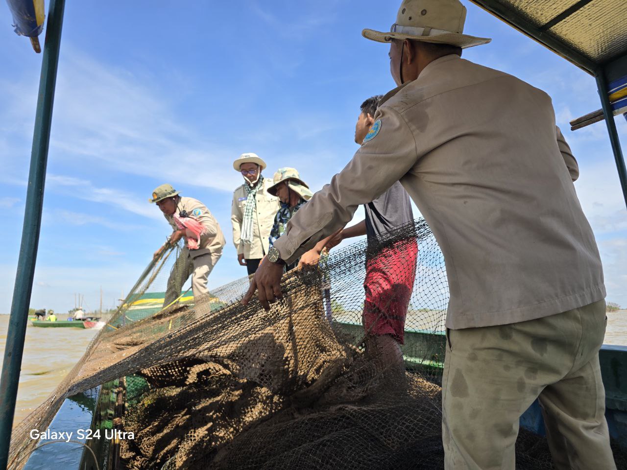 ឯកឧត្តម ប៉ែន ផល្លីកា អនុរដ្ឋលេខាធិការក្រសួងកសិកម្ម រុក្ខាប្រមាញ់ និងនេសាទ បានដឹកនាំកម្លាំងអធិការដ្ឋានរដ្ឋបាលជលផលខាងត្បូងបឹងទន្លេសាប ខណ្ឌរដ្ឋបាលជលផលកំពង់ឆ្នាំង ផ្នែករដ្ឋបាលជលផលកំពង់ប្រាសាទ និងសង្កាត់រដ្ឋបាលជលផលជលគិរី ដោយសហការជាមួយគណៈ បញ្ជាការឯកភាពរដ្ឋបាលស្រុកជលគិរី កងកម្លាំងតំបន់ប្រតិបត្តិការសឹករងកំពង់ឆ្នាំងប្រចាំការនៅក្បាលកោះស្តីការទូ ឃុំពាមឆ្កោក និងសហគមន៍នេសាទភូមិថ្មី