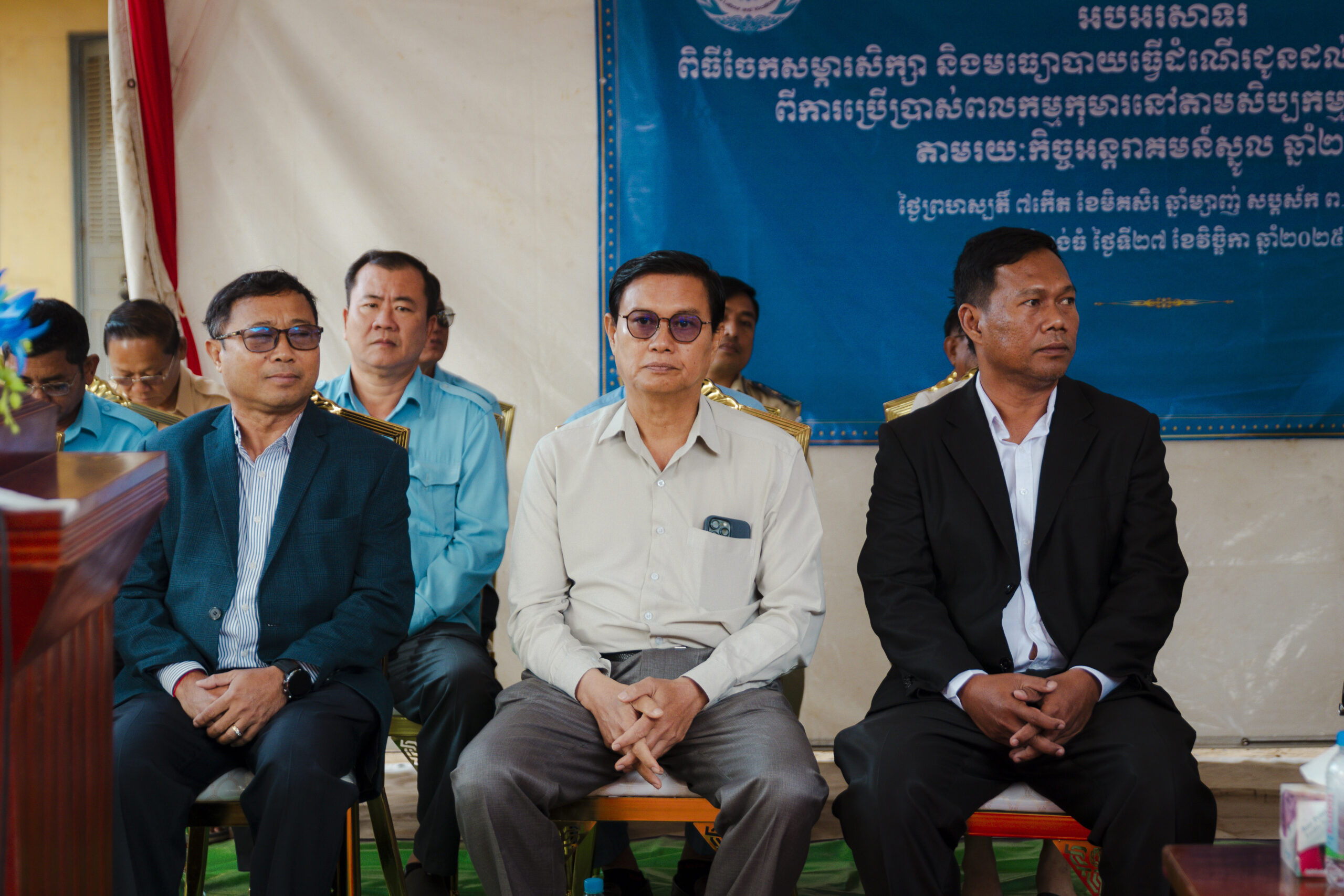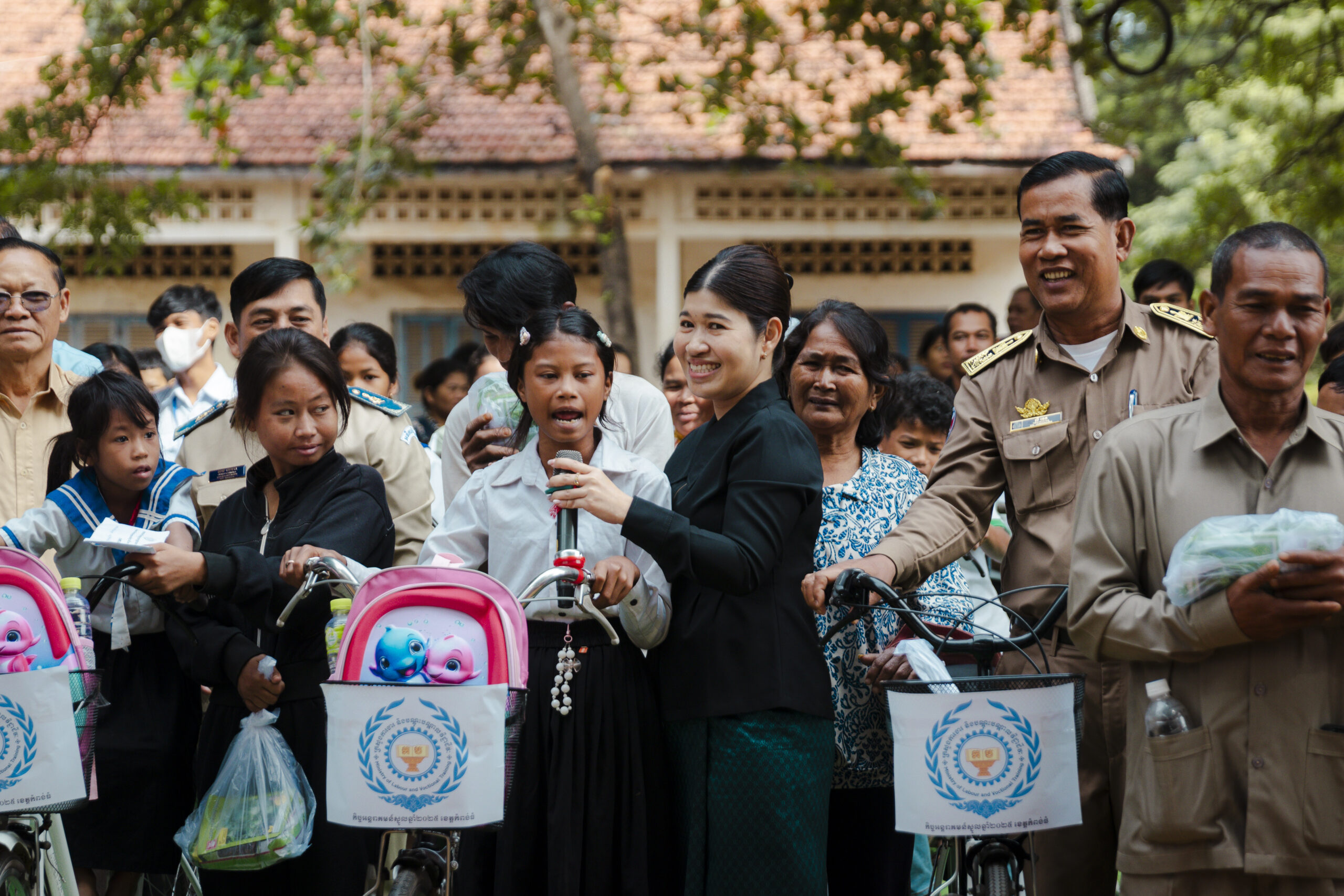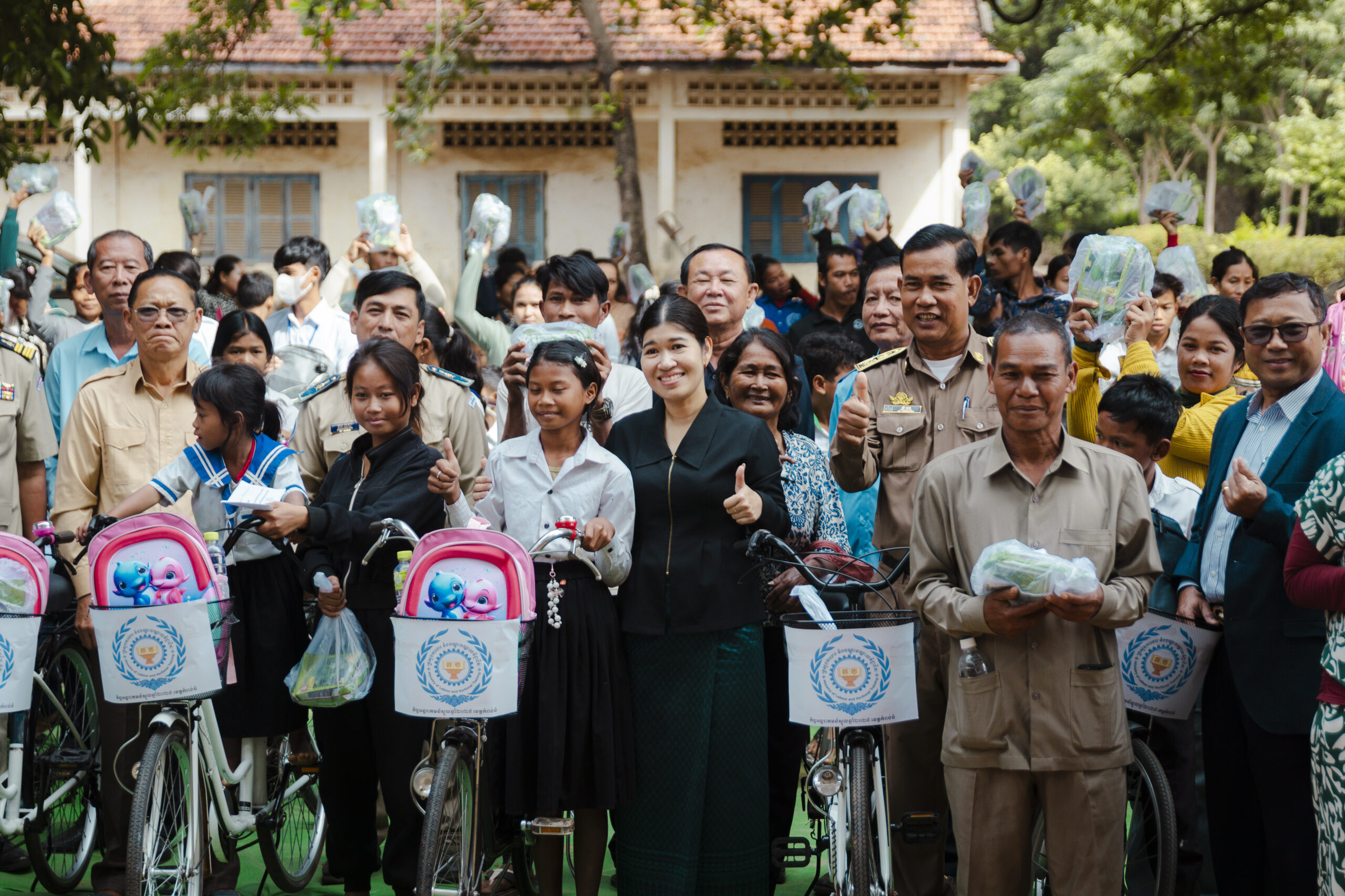 ពិធីចែកសម្ភារសិក្សា និងមធ្យោបាយធ្វើដំណើរជូនដល់កុមារ ស្ថិតនៅសាលាបឋមសិក្សា និងអនុវិទ្យាល័យបញ្ញាជី ក្នុងគម្រោងកិច្ចអន្តរាគមន៍ស្នូល ២០២៥ របស់ខេត្តកំពង់ធ
