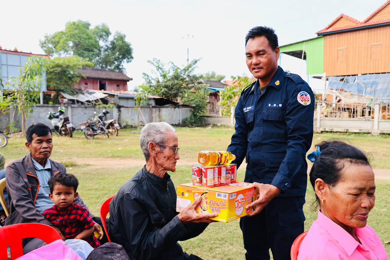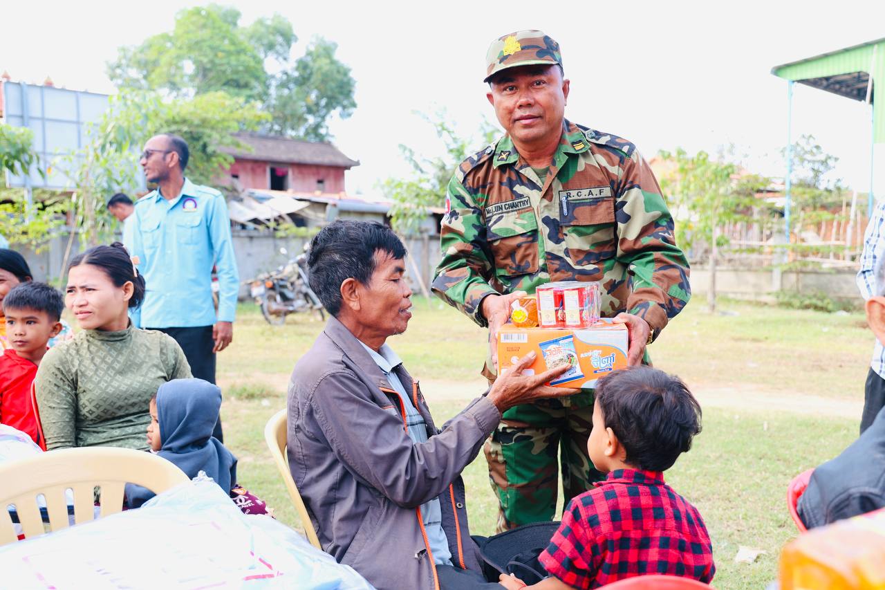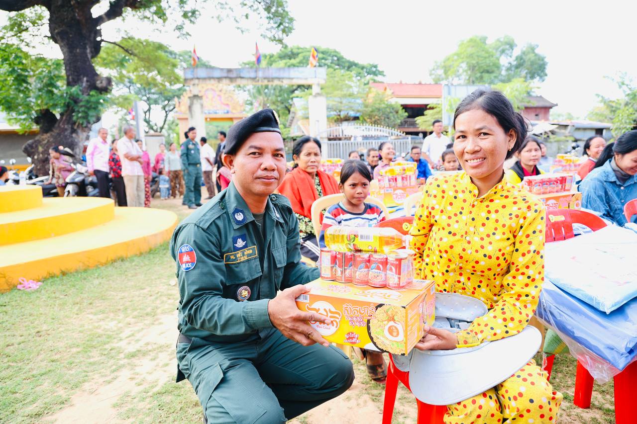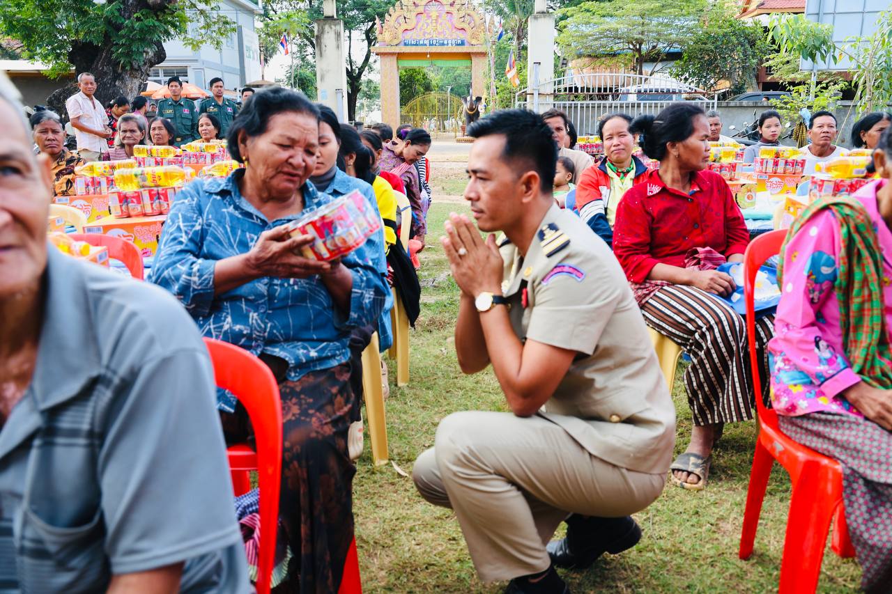 សូមបញ្ជាក់ថា ប្រជាពលរដ្ឋងាយរងហានិភ័យនៅក្នុងឱកាសនេះមាន ៣២គ្រួសារ ដែល១គ្រួសារៗទទួលបាននូវ÷ អង្ករ១បេ តង់១ មុង១ មី១កេស ប្រេងឆា១ដប និងត្រីខរ១យួរ ដែលជាថវិកាសេវាសង្គមមូលនិធិឃុំ។