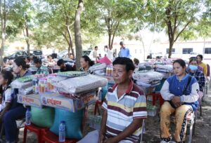 ប្រធានក្រុមការងារចុះមូលដ្ឋានស្រុកកំពង់ស្វាយ ជួបសំណេះសំណាល សួរសុខទុក្ខ និងនាំយកអំណោយជូនដល់គ្រួសារវីរកងទ័ពជួរមុខ ចំនួន៥០គ្រួសា ក្នុងស្រុកកំពង់ស្វាយ ខេត្តកំពង់ធ