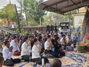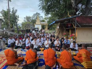 ប្រធានក្រុមការងារចុះមូលដ្ឋានឃុំព្រៃគុយស្រុកកំពង់ស្វាយ ខេត្តកំពង់ធំ បួងសួងសុំ សេចក្តីសុខ និងសូមជួយថែរក្សាដល់វីរកងទ័ព ឱ្យឈ្នះអស់មារសត្រូវឈ្លានពាន និងទទួលបានជ័យជម្នះនៅគ្រប់សមរភូម