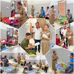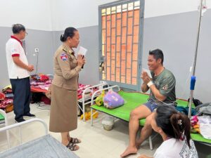 (កំពង់ធំ)÷ នាព្រឹកថ្ងៃចន្ទទី០៥ ខែមករា ឆ្នាំ២០២៦ លោកជំទាវ លំ គន្ធារី អនុប្រធានអចិន្ត្រៃយ៍គណៈកម្មាធិការសាខាកាកបាទក្រហមកម្ពុជាខេត្តកំពង់ធំ តំណាងឯកឧត្តម នួន ផារ័ត្ន ប្រធានគណៈកម្មាធិការសាខា លោក កែវ ផល នាយកសាខា មន្ត្រីក្រុមប្រតិបត្តិ បានចុះសួរសុខទុក្ខ វីរៈកងទ័ពជួរមុខរងរបួស ចំនួន០៦រូប ដែលទើបបញ្ជូនមកថ្មីសម្រាកព្យាបាល នៅមន្ទីរពេទ្យខេត្តកំពង់ធំ ។