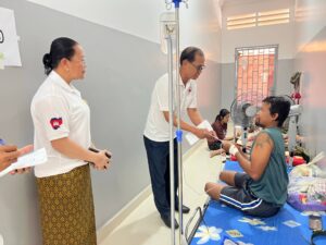 (កំពង់ធំ)÷ លោកជំទាវ លំ គន្ធារី អនុប្រធានអចិន្ត្រៃយ៍គណៈកម្មាធិការសាខាកាកបាទក្រហមកម្ពុជា ខេត្តកំពង់ធំ តំណាងឯកឧត្តម នួន ផារ័ត្ន ប្រធានគណៈកម្មាធិការសាខា លោក កែវ ផល នាយកសាខា និងមន្ត្រីក្រុមប្រតិបត្តិ បានចុះសួរសុខទុក្ខ វីរកងទ័ពជួរមុខរងរបួសចំនួន១៤នាក់ ដែលទើបបញ្ជូនមកថ្មីសម្រាកព្យាបាលនៅមន្ទីរពេទ្យខេត្តកំពង់ធំ នាថ្ងៃទី០៧ ខែមករា ឆ្នាំ២០២៦ ។