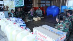 នៅក្នុងឱកាសនេះ ឧត្តមសេនីយ៍ទោ សោម ស៊ុន បានប្រគល់ប្រេងឥន្ធនៈ ស្បៀងអាហារគ្រឿងឧបភោគបរិភោគ និងសម្ភារប្រើប្រាស់មួយចំនួន ដែលជាអំណោយរបស់សម្ដេចមហាបវរធិបតី ហ៊ុន ម៉ាណែត និងលោកជំទាវ តាមរយៈឯកឧត្តម ឧបនាយករដ្ឋមន្ត្រី វង្សី វិស្សុត រដ្ឋមន្ត្រីប្រចាំការ ទីស្តីការគណៈរដ្ឋមន្ត្រី និងជាប្រធានក្រុមការងាររបស់រដ្ឋាភិបាលចុះមូលដ្ឋានខេត្តកំពង់ធំ ជូនដល់កងកម្លំាងចម្រុះ ដើម្បីបន្តបំពេញភារកិច្ច ការពារ ទប់ស្កាត់ និងបង្ក្រាបបទល្មើសនេសាទខុសច្បាប់ ដោយគ្មានការដកថយឡើយ ។