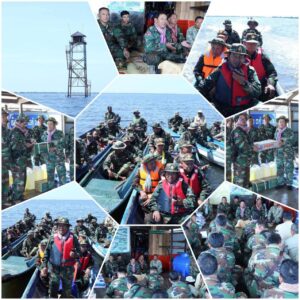 ខេត្តកំពង់ធំ៖ នៅព្រឹកថ្ងៃទី២ ខែកុម្ភៈ ឆ្នាំ២០២៦ ឧត្ដមសេនីយ៍ទោ សោម ស៊ុន មេបញ្ជាការតំបន់ប្រតិបត្តិការសឹករងកំពង់ធំ អនុប្រធានអចិន្ដ្រៃយ៍ នៃគណៈកម្មការគ្រប់គ្រងការពារ ទប់ស្កាត់ និងបង្ក្រាបបទល្មើសធនធានធម្មជាតិ ខេត្តកំពង់ធំ បានទៅជួបសំណេះសំណាលសាកសួរសុខទុក្ខ, ប្រគល់ភារកិច្ច ក្នុងការបែងចែកប្រើប្រាស់កម្លាំង ការពារអភិរក្សពូជត្រី នៅតំបន់បឹងទន្លេឆ្មារ និងតំបន់បាឡត បឹងទន្លេសាបក្នុងរដូវប្រាំងនេះ និងបានឧបត្ថម្ភ ប្រេងឥន្ធនៈ គ្រឿងឧបភោគបរិភោគជូនដល់កងកម្លំាងចម្រុះដែលកំពុងប្រចាំការនៅទីបញ្ជាការស្រាលបង្ក្រាបបទល្មើសនេសាទ នៅឃុំពាមបាង ស្រុកស្ទោង ខេត្តកំពង់ធំ ។