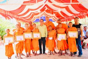 ទន្ទឹមនឹងនេះលោក សាយ គឹមឡម បាន កើតសរសើរខ្ពស់ដល់ព្រះអង្គសមណៈសិស្សគ្រប់អង្គ ដែលបានខិតខំសិក្សាស្វាធ្យាយារៀនសូត្រពុទ្ធសាសនារហូត ទទួលបានលទ្ធផលល្អប្រសើរនឹងទទួលបាននូវប័ណ្ណសរសើរ ពី សាលារៀន និងសាលាអនុគណស្រុកស្ទោងដូចមានប័ណ្ណសរសើរ និងរង្វាន់បច្ច័យលើកទឹកចិត្តដូចនៅក្នុងឱកាសនេះ។