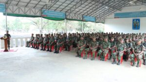 ឯកឧត្តម នួន ផារ័ត្ន បានផ្ដាំផ្ញើដល់កងកម្លាំងទាំងអស់នៃបញ្ជាការដ្ឋានតំបន់ប្រតិបត្តិការសឹករងកំពង់ធំ ត្រូវត្រៀមខ្លួនរួចជាស្រេចក្នុងការអនុវត្តន៍តាមបទបញ្ជារបស់ថ្នាក់ដឹកនាំគ្រប់លំដាប់ថ្នាក់ នៃកងយោធពលខេមរភូមិន្ទ ក្នុងភារកិច្ចការពារបូរណភាពទឹកដី ទប់ស្កាត់មិនឱ្យសត្រូវឃ្លានពានរំលោភដែលអធិបតេយ្យភាពយើងបានឡើយ។ ហើយកន្លងមក និងចំពោះមុខ សម្ដេចមហាបរវរធិបតី ហ៊ុន ម៉ាណែត នាយករដ្ឋមន្ត្រីនៃព្រះរាជា ណាចក្រកម្ពុជា លោកបានខិតខំប្រឹង ប្រែងគ្រប់បែបយ៉ាង ដើម្បីសន្តិភាព និងការពារបូរណភាពទឹកដី ដោយបានទាមទារការដោះស្រាយខ្សែបន្ទាត់ព្រំដែនតាមរយៈយន្តការច្បាប់អន្តរជាតិ និងកិច្ចព្រមព្រៀងនានាដែលនៅជាធរមាន ដែលភាគីកម្ពុជា ថៃ បានទទួលស្គាល់នាពេលកន្លងមក ។ កម្ពុជាមិនទទួល ស្គាល់ជាដាច់ខាតនៅខ្សែបន្ទាត់ព្រំដែន តាមការប្រើប្រាស់កម្លាំងយោធា ។