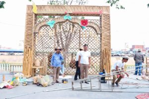 នៅតាមបរិវេណសួនច្បារមាត់ស្ទឹងសែន គេឃើញមានការតាំងលម្អដោយប្រើភ្លើងពណ៌ ស្លាកសញ្ញា និងរូបចម្លាក់ផ្សេងៗ ដែលបង្កើតបរិយាកាសរីករាយ សប្បាយរីករាយ និងសមរម្យទៅនឹងពិធីបុណ្យប្រពៃណីខ្មែរ។