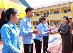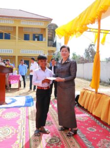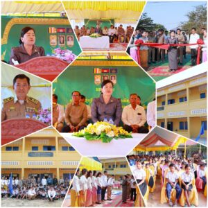 លោកជំទាវ បន្តថា សមិទ្ធផលជាអគារសិក្សាថ្មីនេះ មិនត្រឹមតែបានចូលរួមចំណែកជួយបម្រើ និងបំពេញតម្រូវការចាំបាច់ផ្នែកហេដ្ឋារចនាសម្ព័ន្ធអប់រំ និងឆ្លើយតបតម្រូវការចាំបាច់ដល់ការសិក្សារបស់ក្មួយៗទាំងអស់នៅទីនេះ ដើម្បីធានាក្នុងការសិក្សាសមតាមបំណងប្រាថ្នា និងការទទូចចង់បានរបស់ថ្នាក់ដឹកនាំ និងគណៈគ្រប់គ្រងសាលាប៉ុណ្ណោះទេ ប៉ុន្តែក៏ជាការឆ្លើយតប បានទាន់ពេលវេលា ស្របតាមគោលដៅអភិវឌ្ឍន៍សហសវត្សកម្ពុជា របស់រាជរដ្ឋាភិបាល ក្នុងការលើកស្ទួយវិស័យអប់រំ សំដៅដល់ការកសាងនូវធនធានមនុស្ស ប្រកបដោយសមត្ថភាពគ្រប់គ្រាន់ នៅក្នុងកិច្ចអភិវឌ្ឍន៍ប្រទេសជាតិ លើគ្រប់វិស័យ ហើយបានបញ្ជាក់ឲ្យឃើញពីការទទួលខុសត្រូវ និងការគិតគូរយកចិត្តទុកដាក់ចូលរួមពីគ្រប់មជ្ឈដ្ឋាន ក្នុងការអភិវឌ្ឍវិស័យអប់រំរបស់យើង។