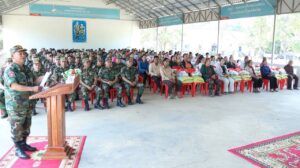 ឯកឧត្តម នួន ផារ័ត្ន សំណេះសំណាលសាកសួរសុខទុក្ខឧបត្ថម្ភស្បៀងអាហារ និងថវិកា ជូនដល់គ្រួសារយោធិន នៃបញ្ជាការដ្ឋានតំបន់ប្រតិបត្តិការសឹករងកំពង់ធំ ដែលកំពុងបំពេញភារកិច្ចការពារបូរណភាពទឹកដី ក្នុងឱកាសបុណ្យចូលឆ្នាំថ្មីប្រពៃណីជាតិខ្មែរ