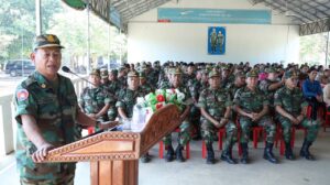 ឯកឧត្តម នួន ផារ័ត្ន បានផ្សព្វផ្សាយសភាពការណ៍មួយចំនួន ស្ដីពីសភាពការណ៍ទូទៅនៅតាមព្រំដែនកម្ពុជា ថៃ និងវិធានការនានារបស់ប្រមុខរាជរដ្ឋាភិបាល ដែលដឹកនាំដោយសម្ដេចមហាបវរអធិបតី ហ៊ុន ម៉ាណែត លោកបានខិតខំប្រឹងប្រែងគ្រប់បែបយ៉ាងក្នុងការតស៊ូ ទាំងវិស័យយោធា ក្នុងភារកិច្ចការពារបូរណភាពទឹកដីមិនឱ្យមានការបាត់បង់ ។ ទាំងវិស័យនយោបាយការទូត និងវិធានការនានាតាមផ្លូវច្បាប់ ដើម្បីសន្តិភាពយូរអង្វែង ។ ដូច្នេះយោធិនគ្រប់រូប និងក្រុមគ្រួសារ ព្រមទាំងប្រជាពលរដ្ឋទាំងអស់ ត្រូវជឿជាក់លើការដឹកនាំដ៏ត្រឹមត្រូវរបស់សម្ដេចមហាបវរធិបតី ហ៊ុន ម៉ាណែត នាយករដ្ឋមន្ត្រីនៃព្រះរាជាណាចក្រកម្ពុជា ។