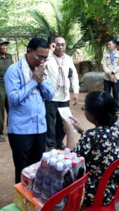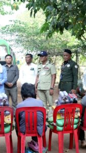 លោក សុិន វណ្ណវុឌ្ឍ និងក្រុមការងារ សួរសុខទុក្ខ និងឧបត្ថម្ភស្បៀងអាហារជូនក្រុមគ្រួសារអតីតយុទ្ធជន ដែលកំពុងរស់នៅក្នុងមណ្ឌលអភិវឌ្ឍន៍អតីតយុទ្ធជន មរតកតេជោធិបតី ថ្លុកព្រីង នៅស្រុកសន្ទុក ក្នុងឱកាសមុនបុណ្យចូលឆ្នាំថ្មីប្រពៃណីជាតិខ្មែរ