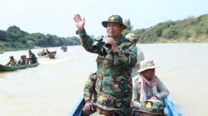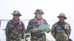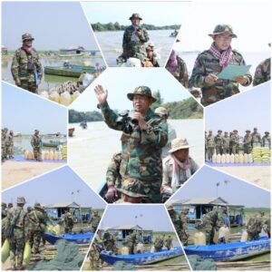 ខេត្តកំពង់ធំ៖ នៅព្រឹកថ្ងៃទី៨ ខែមេសា ឆ្នាំ ២០២៦ លោកវរសេនីយ៍ឯក អ៊ូឆេងកន មេបញ្ជាការរង តំណាងឧត្តមសេនីយ៍ទោ សោម ស៊ុន មេបញ្ជាការ តំបន់ប្រតិបត្តិការសឹករងកំពង់ធំ បាននាំយកស្បៀងអាហារ គ្រឿងឧបភោគបរិភោគ ប្រេងឥតនៈ ទៅប្រគល់ភារកិច្ចជូនដល់កងកម្លាំង នៃបញ្ជាការដ្ឋានតំបន់ប្រតិបត្តិការសឹករងកំពង់ធំ ដែលកំពុងប្រចាំការ នៅទីបញ្ជាការស្រាលការពារ ទប់ស្កាត់ និងបង្ក្រាបបទល្មើសនេសាទខុសច្បាប់ នៅក្នុងឃុំពាមបាង ស្រុកស្ទោង ខេត្តកំពង់ធំ ។