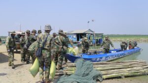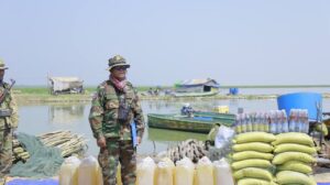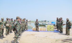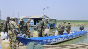 បញ្ជាការដ្ឋានតំបន់ប្រតិបត្តិការសឹករងកំពង់ធំ ពង្រឹងភារកិច្ច និងប្រគល់គ្រឿងឧបភោគបរិភោគ ប្រេងឥន្ធនៈ ជូនដល់កងកម្លាំងបង្ក្រាបបទល្មើសនេសាទ នៅឃុំពាមបាង ស្រុកស្ទោង ខេត្តកំពង់ធ