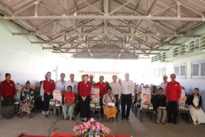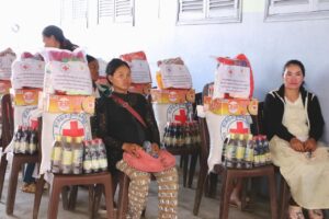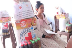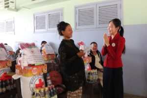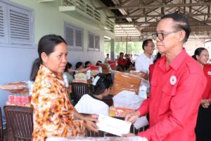 សូមបញ្ជាក់ផងដែរថា កញ្ចប់សំណេះសំណាលនេះរួមមាន អង្ករចំនួន២៥គីឡូក្រាម មី១កេស ត្រីខ១យួរ ទឹកត្រី១យួរ ទឹកស៊ីអ៊ីវ១យួរ កន្សែងពោះគោ១ សារុង១ ម្សៅលាបខ្លួនកូនក្មេង១កំប៉ុង សាប៊ូកក់សក់កូនក្មេង១ ដប ឈុតមួកស្រោមដៃស្រោមជើងមួយកំប្លែនិងថវិកាមួយចំនួនផងដែរ។