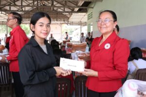 ជាមួយគ្នានេះផងដែរលោកជំទាវ លំ គន្ធារី អនុប្រធានអចិន្ត្រៃយ៍គណៈកម្មាធិការសាខាកាកបាទក្រហមកម្ពុជាខេត្តកំពង់ធំ បានអានសារលិខិតរបស់សម្ដេចគតិព្រឹទ្ធបណ្ឌិត ប៊ុន រ៉ានី ហ៊ុន សែន ប្រធានកាកបាទក្រហមកម្ពុជា ដើម្បីស្ត្រីសម្រាលកូនតូច ស្ត្រីមានផ្ទៃពោះចេះរក្សាសុខភាពអនាម័យដល់កូនចៅ មានសុខភាពល្អនិងបញ្ញាវាងវៃ។