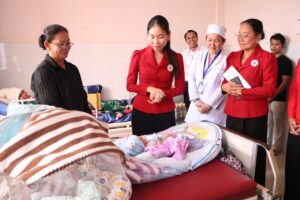 (កំពង់ធំ)÷ក្រុមការងារឥស្សរជនឆ្នើមថ្នាក់សាខាកាកបាទក្រហមកម្ពុជាខេត្តកំពង់ធំ ដែលមានលោកជំទាវ លឹម មួយស្រៀន នួនផារ័ត្ន អនុប្រធានកិត្តិយសសាខាកាកបាទក្រហមកម្ពុជា ខេត្តកំពង់ធំអមដំណើរដោយលោកជំទាវ លំ គន្ធារី អនុប្រធានអចិន្ត្រៃយ៍គណៈកម្មាធិការសាខា លោក លោកស្រីមន្ត្រីក្រុមប្រតិបត្តិសាខា លោក លោកស្រីមន្ត្រីអនុសាខា បានអញ្ជើញចុះជួបសំណេះសំណាងសួរសុខទុក្ខ និងចែកអំណោយមនុស្សធម៌ព្រមទាំងកញ្ចប់ឃីតស្ត្រីទៅដល់ស្ត្រីសម្រាលកូនតូច ព្រមទាំងស្ត្រីមានផ្ទៃពោះចំនួន៥០រូប នៅមន្ទីរពេទ្យបង្អែកបារាយ
